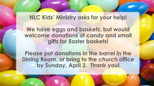 - Pray for preparations of our Easter Weekend Vacation Bible School, Good Friday through Easter Sunday morning. Pray for leaders, and that children's hearts will be open to Jesus.