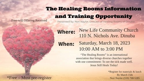 10:00 a.m. - 3:00 p.m. - Healing Rooms Information and Training Workshop - Dining Room