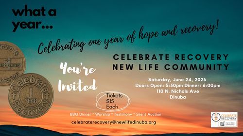 How time fly’s when your in recovery! Please join us June 24th Celebrate Recovery at New Life Dinuba will be having a celebration of hope and recovery. The evening will include a special bbq chicken dinner with all the fixings, worship time, a special testimony and a silent auction!