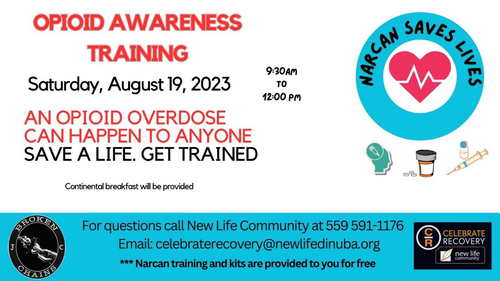 9:30 a.m - Noon - Celebrate Recovery offers OPIOD AWARENESS TRAINING and NARCAN KITS - Dining Room - CLICK TO REGISTER BELOW