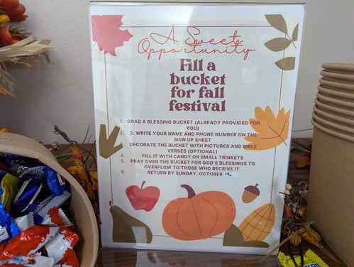 You can also borrow a bucket to fill with candy or small items -- follow the instructions on the table! Filled buckets need to be returned by October 19.