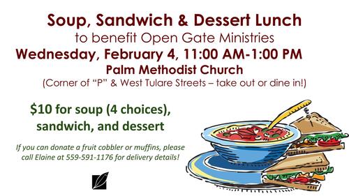 11 a.m.-1 p.m. - Fundraiser lunch for Open Gate Ministries at Palm Methodist Church