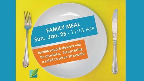 11:15 a.m. - Family Meal - Dining Room (tortilla soup and a dessert will be provided by the Kitchen Team--please bring a salad large enough for 10 people to share)