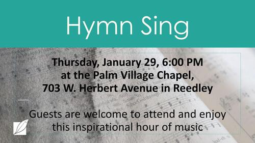 6:00 p.m. - Hymn Sing - Palm Village Chapel in Reedley