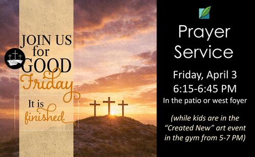 6:15-6:45 p.m. - Good Friday Prayer Service - Patio or West Foyer