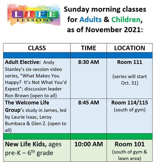 Adult "Welcome" Class (Book of James) - 8:45 A.M. - Rooms 114-115