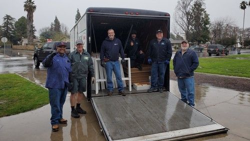 Moe, Joe, and the loading crew with a full trailer of bunk beds from Fresno Pacific University