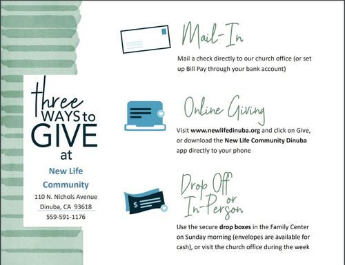 - Benevolence offering (to assist people at NLC who have financial needs)