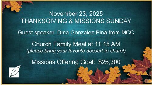 - Pray for our Missions' Month guest speakers: Bruce Smith and Kevin Dalafu from Youth For Christ, Pablo Chavez and family (missionaries in Peru), Christian Uwajeh and ministry in Tanzania, and Dina Gonzalez-Pina from Mennonite Central Committee (MCC).